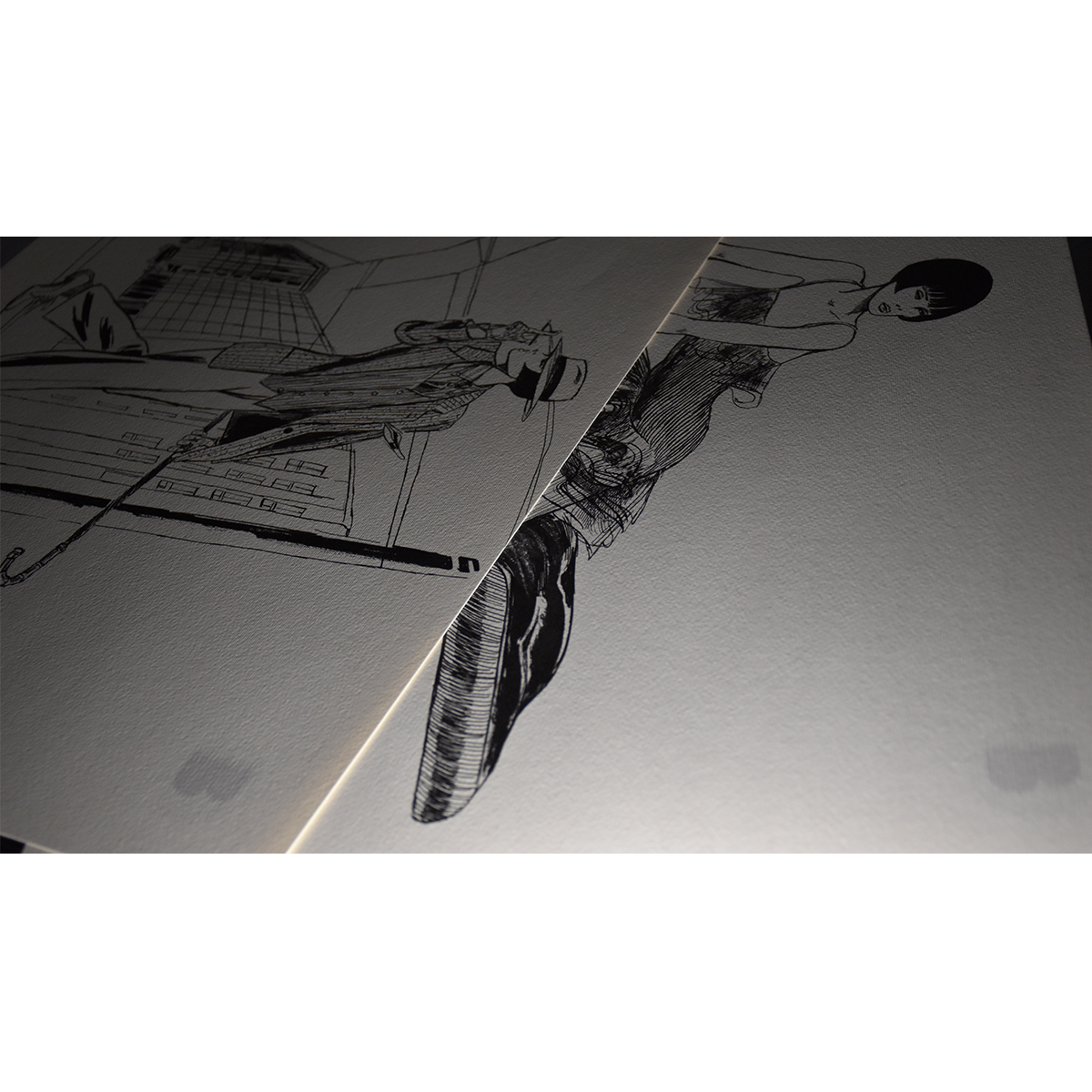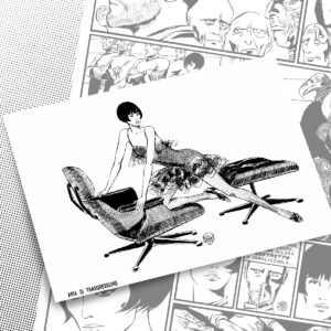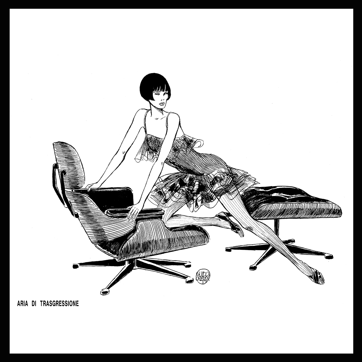 Stampa in bianco e nero su carta bianca disegnata per l’azienda farmaceutica Baldacci a soggetto Valentina, rilasciato con certificato di Autenticità da Archivio Crepax.