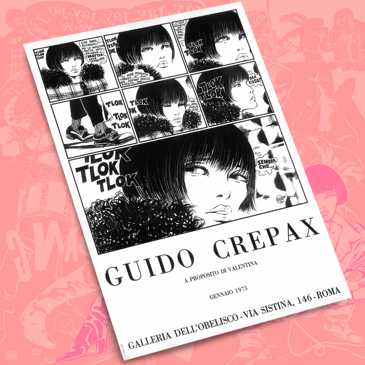 Manifesto vintage del 1975 della mostra alla Galleria Dell’Obelisco di Roma, emesso con timbro a secco di autenticità dell’Archivio Crepax.