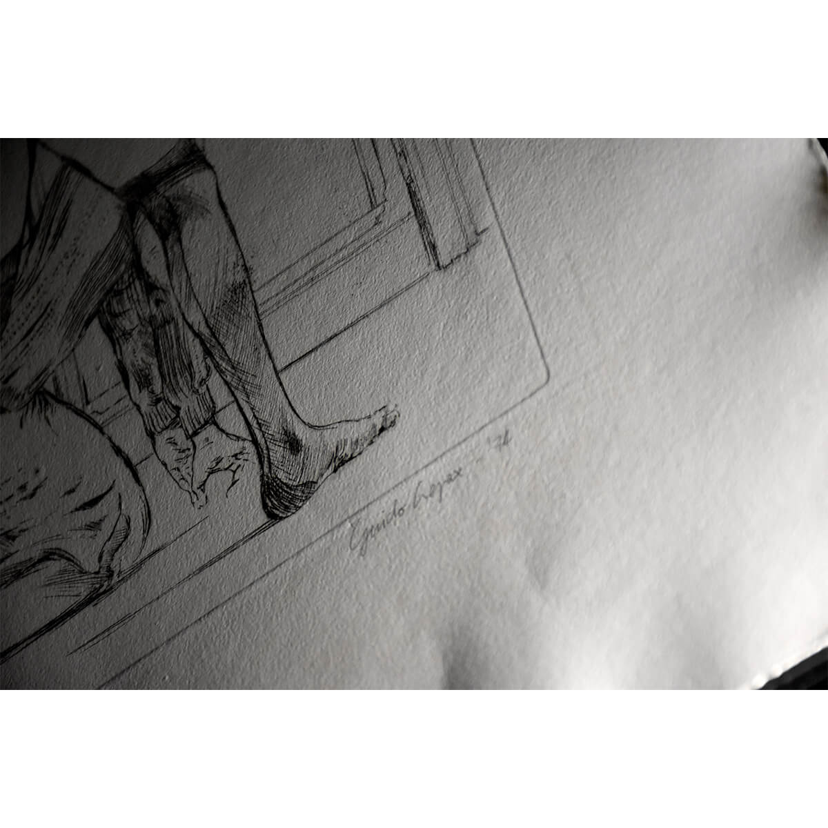 Acquaforte su carta a mano, numerata e firmata da Guido Crepax. Disegnata per Edizioni Centroarte spazio aperto e inserita in una cartella di 5 acqueforti (1974) successivamente stampate nel 1975 all’interno libro “A proposito di Valentina” di Quadrangolo Libri, rilasciato con certificato di Autenticità da Archivio Crepax.