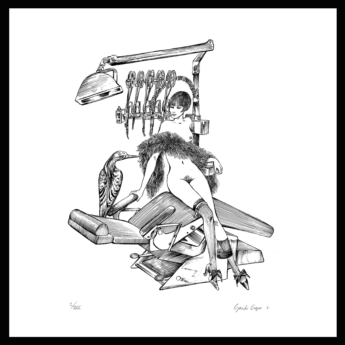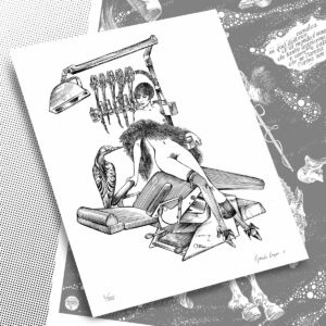 Serigrafia su carta goffrata, illustrata per una ditta di prodotti farmaceutici, firmata da Guido Crepax, 1981, rilasciato con certificato di Autenticità da Archivio Crepax.