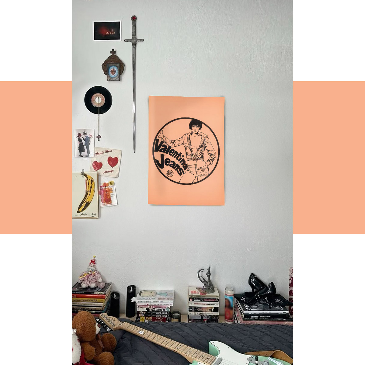 Poster pubblicitario vintage per la collezione anni ’70 “Valentina Jeans”, rilasciato con timbro a secco di autenticità da Archivio Crepax.