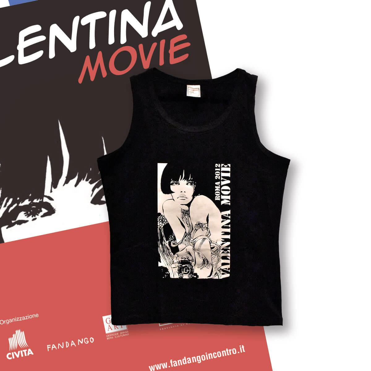 Canottiera nera da donna prodotta per la mostra “Valentina movie” in collaborazione con Palazzo Fandango-incontro 2013.