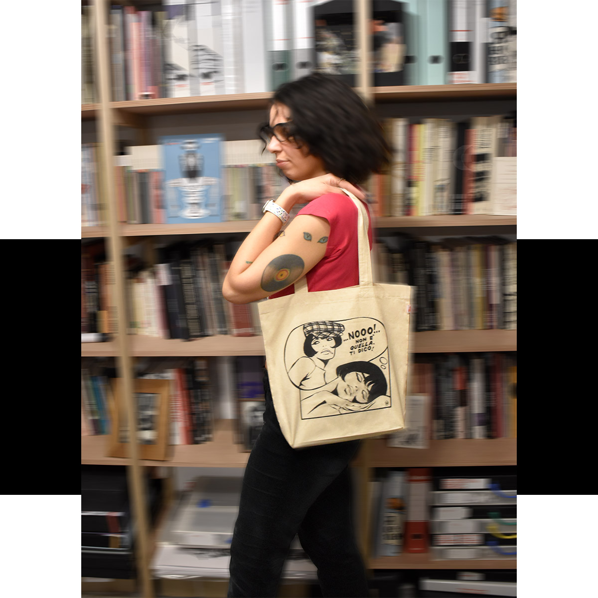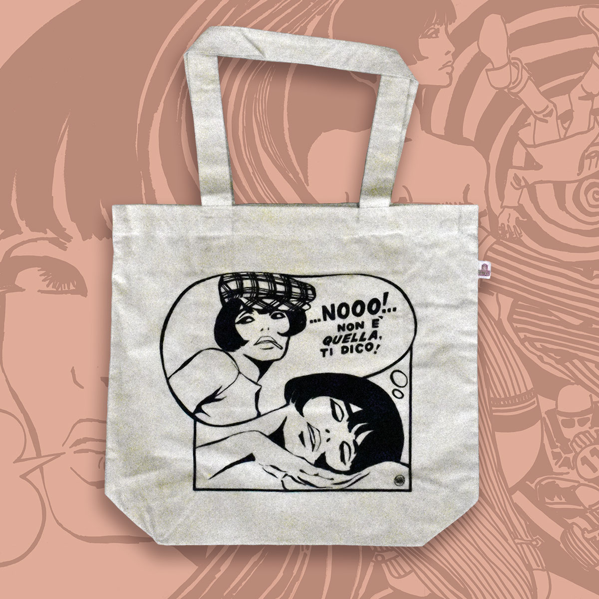 Shopping bag color crema con la stampa dell’iconico personaggio Valentina, creata dal Maestro Guido Crepax.